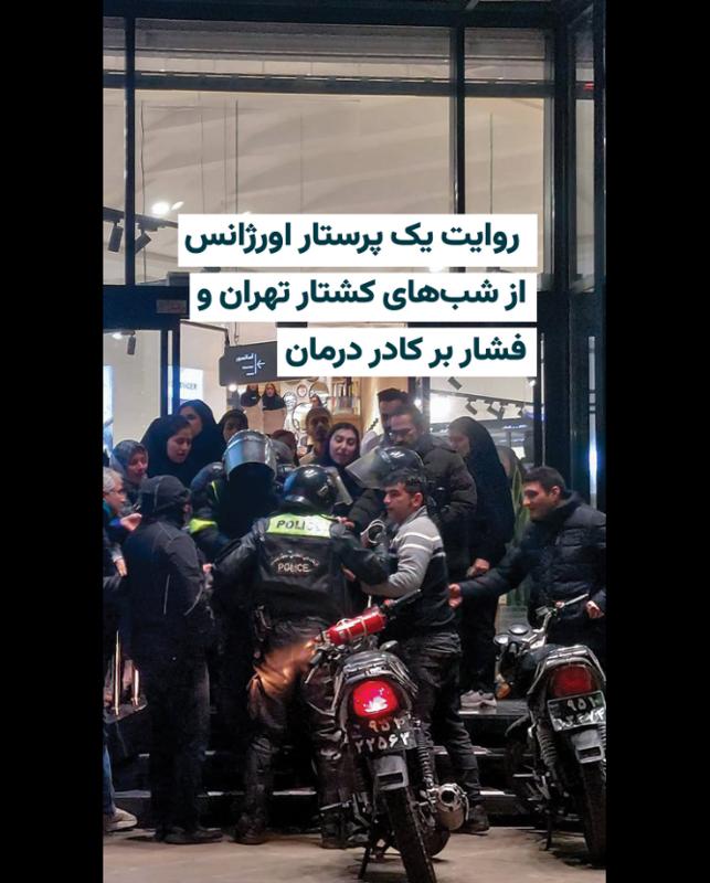 - Reports from Iranian Nurse Associations confirm on the night of the crackdown, nurses had to work 14 hour shifts to treat thousands of injuries in patients as young as three years old. So far some 13000 surgeries have been done with many people still showing up to treat their injuries. Farabi hospital alone treated some 1000 patients for eye injuries (with bullets). Doctors and nurses were additionally stressed by Police and security forces storming the hospitals looking for protesters. Many nurses say “After that night, Life in Iranian hospitals will never be the same!”