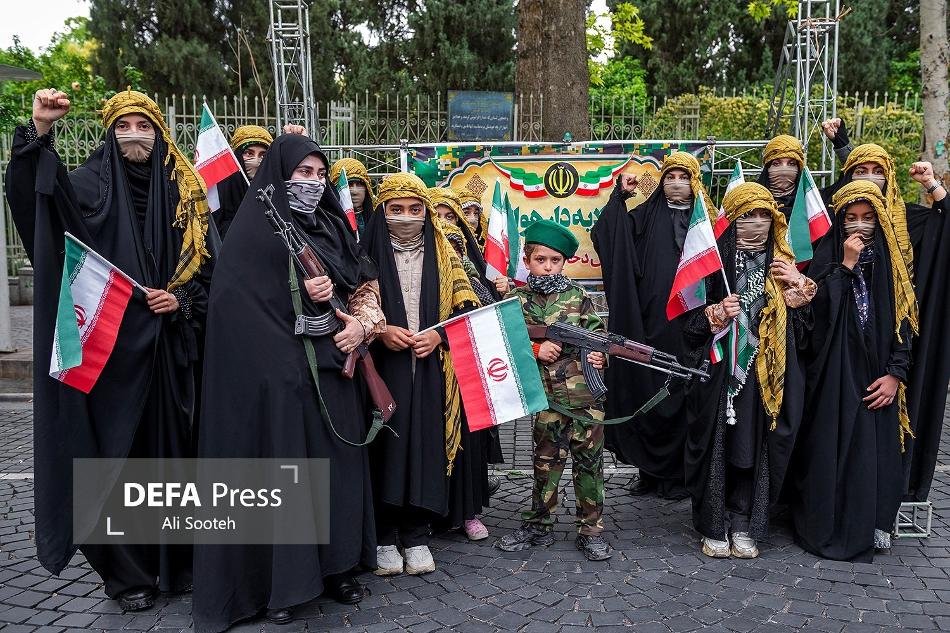 In Iran, nightly or day-time processions of pro-Regime supporters are attended by children, men and black-clad women chanting Death to Israel ad America, demanding revenge and justice for the oppressed: