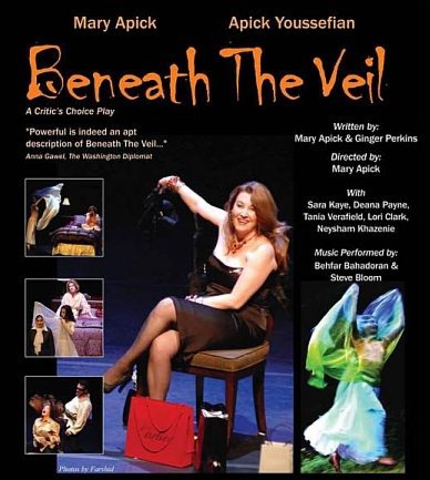 نمایش "در پوشش حجاب" اثر مری آپیک، کارگردان نمایشی ایرانی مقیم ایالات متحده، داستان زندگی، و زجر ۱۰ خانم را در ایران به تصویر میکشد از جمله زهرا کاظمی، عکاس و خبرنگار کانادایی ایرانی که درسال ۲۰۰۳ در زندان اوین در ایران شکنجه شده و به قتل رسید. این نمایش که با موسیقی، رقص باله، صحبت و گاه طنز و هنرنمایی ۸ بازیگر (به جز خانم آپیک)، دو موزیسین و یک خواننده همراه است در سال ۲۰۰۵ جایزه بزرگ منتقدین را از جشنواره تئاتر لس آنجلس دریافت کرد و در سال ۲۰۰۶ به هنگام اجرای آن در نیویورک خانم لاورا بوش همسر رییس جمهور آمریکا مدیر افتخاری این نمایش گردید.